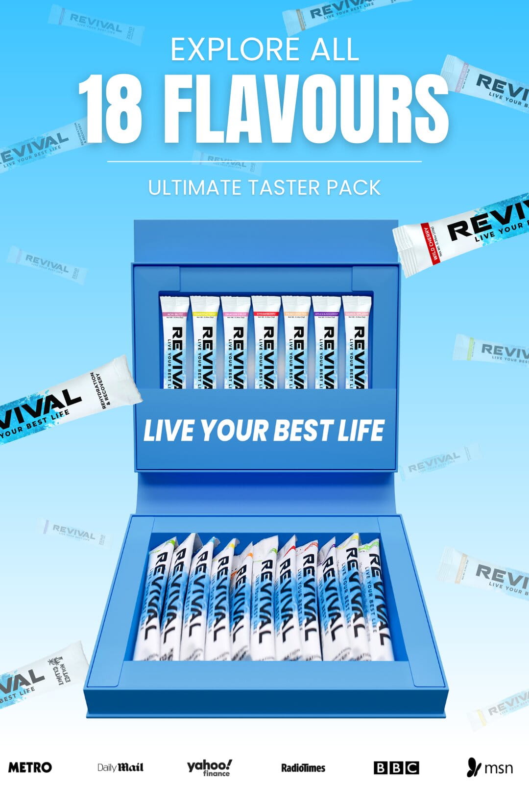 " Every single flavour in the rehydration & zero sugar range all inside of one pack! "