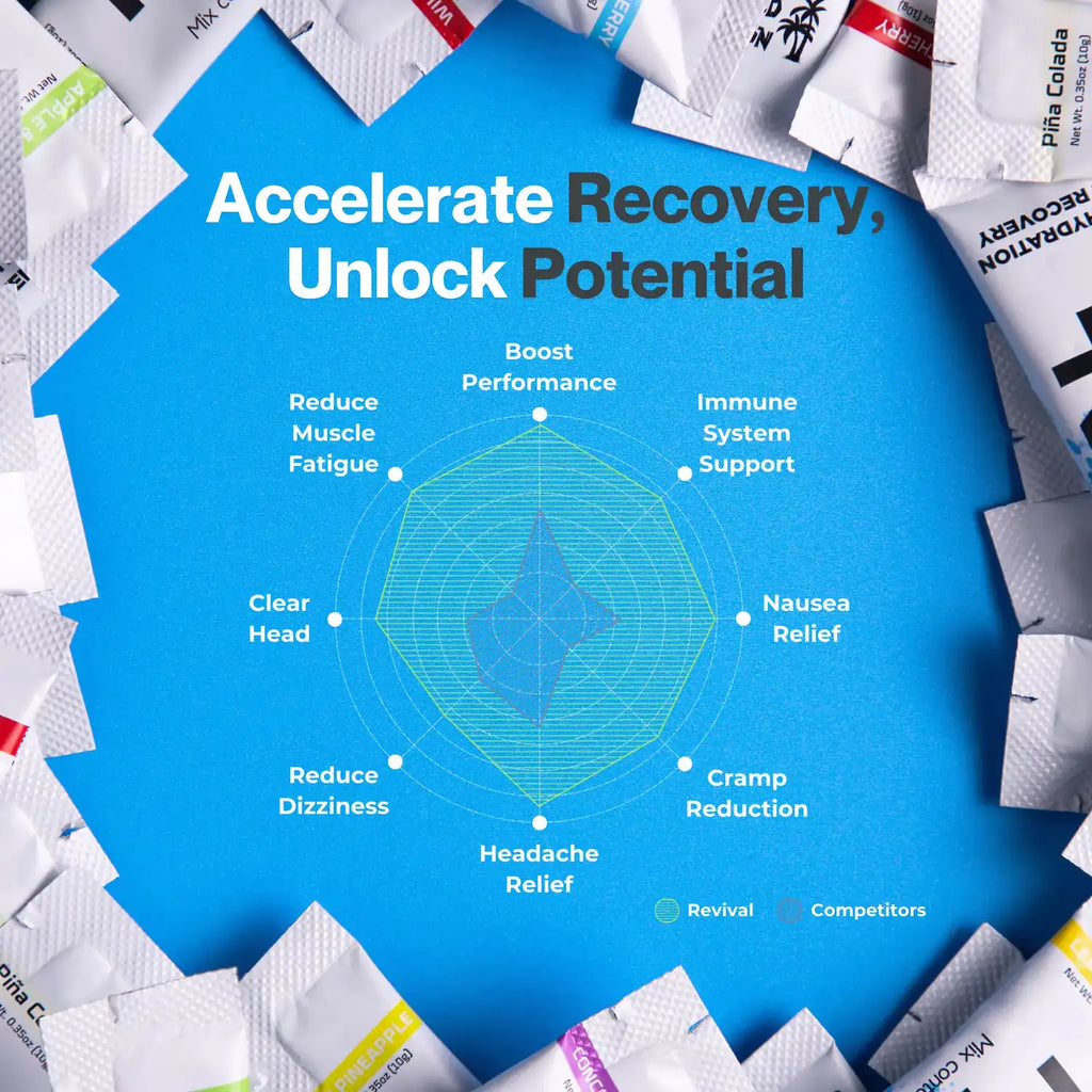Revival is based on a World Health Organisation (WHO) formula and has been designed to provide rapid rehydration whilst delivering a strong dose of vitamins. Our precise blend has been developed alongside leading scientists, doctors and nutritionists and is engineered for optimal hydration